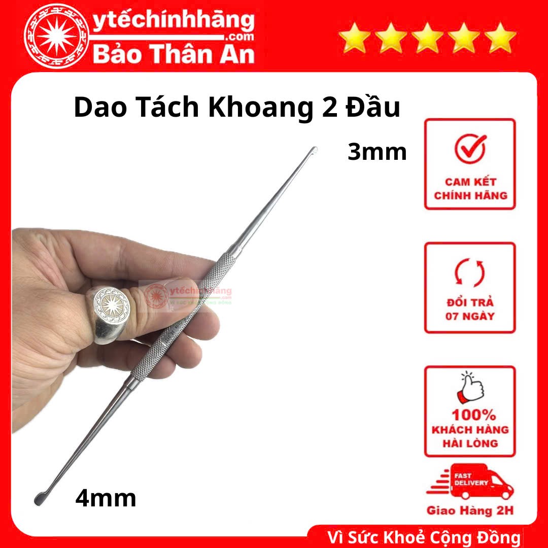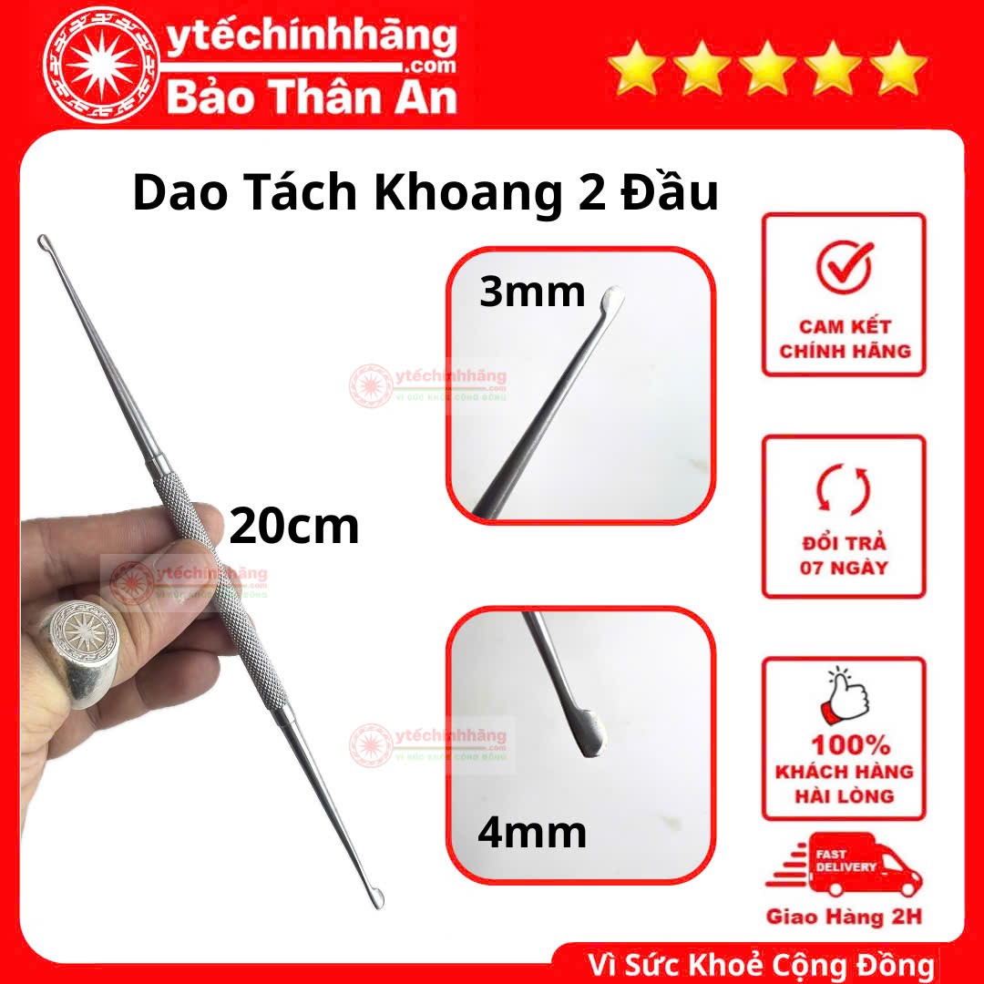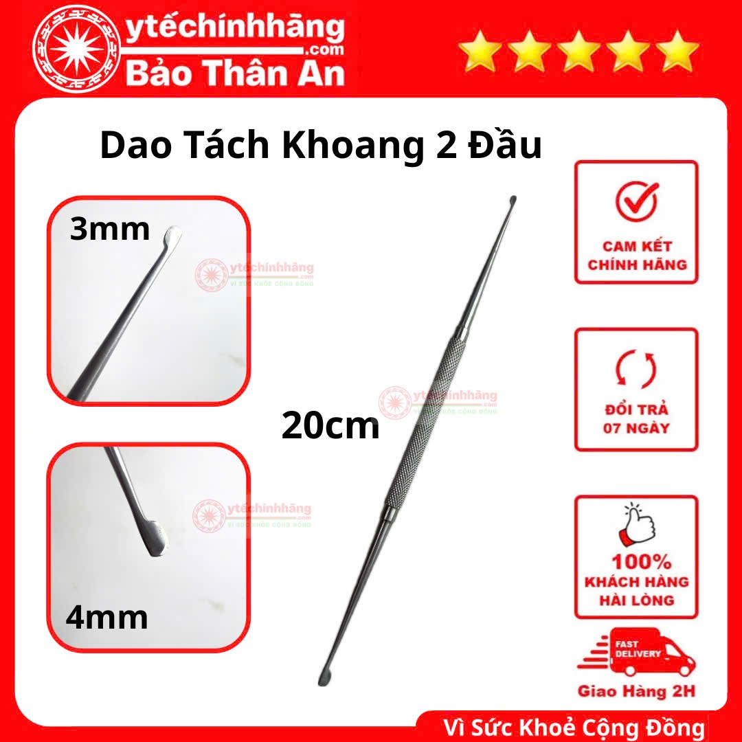 Dao Tách Khoang 2 Đầu là dụng cụ có 2 đầu dao nhỏ, 1 đầu 3mm, 1 đầu 4mm, kích thước chiều dài 20cm.
